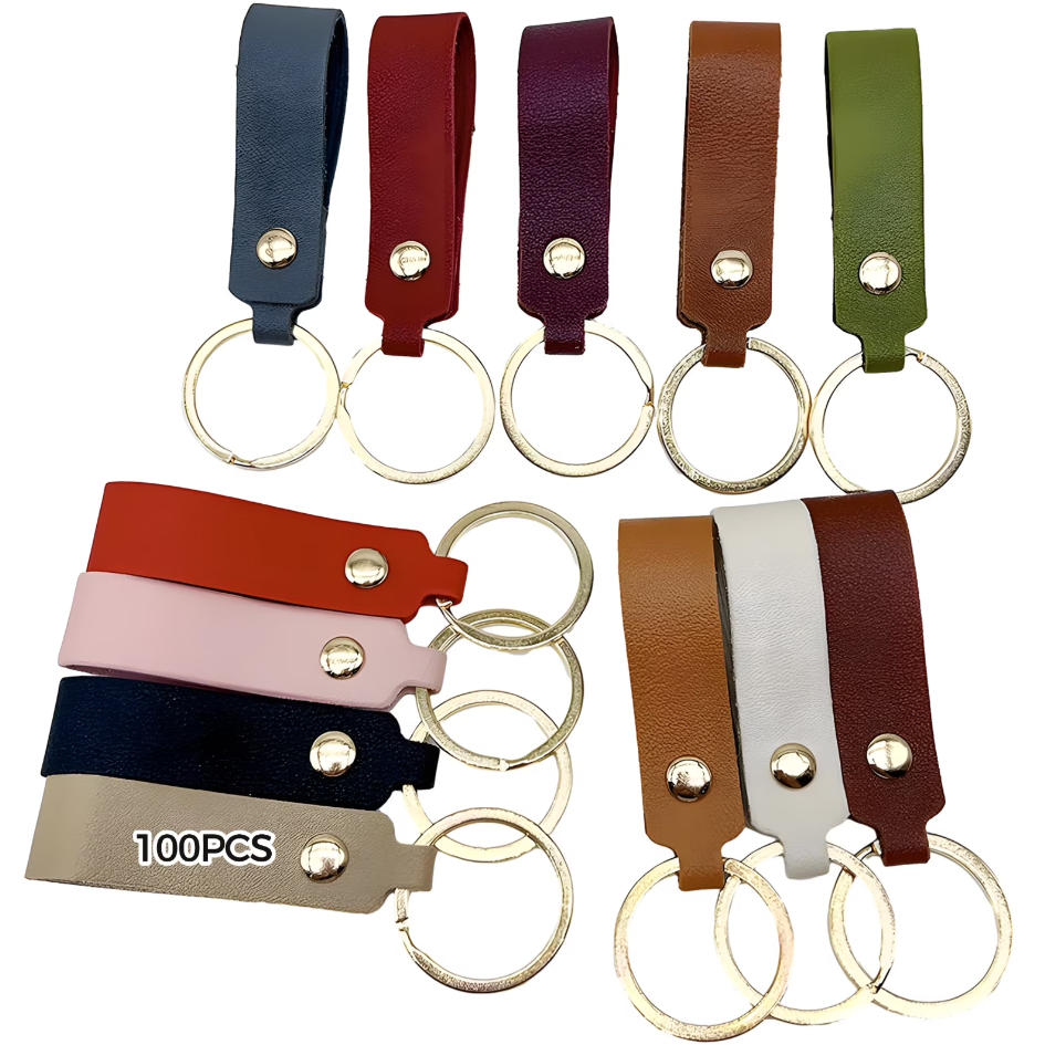 100x PU Leather Keychains – Mixed Colours, DIY & Gift-Ready